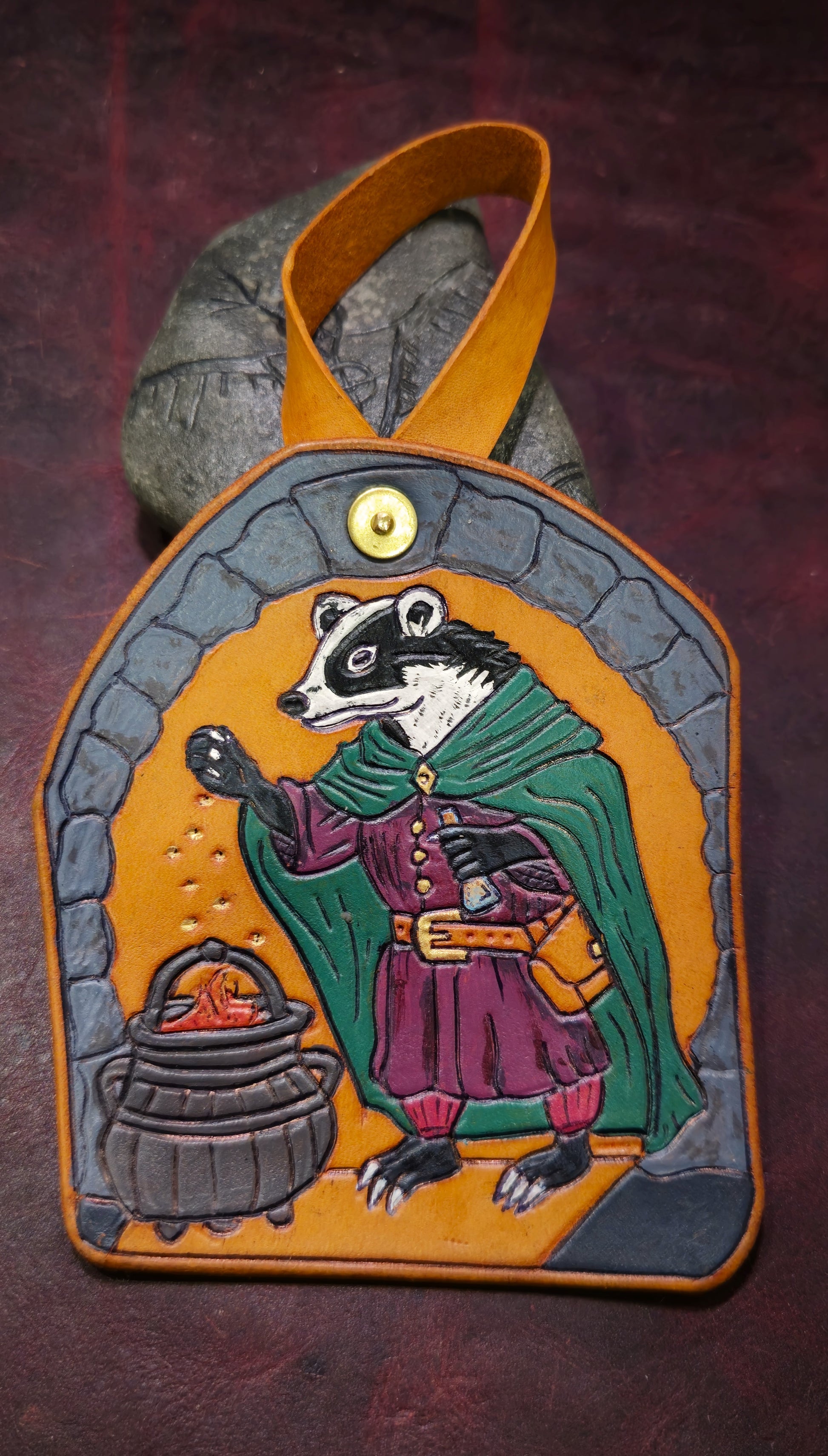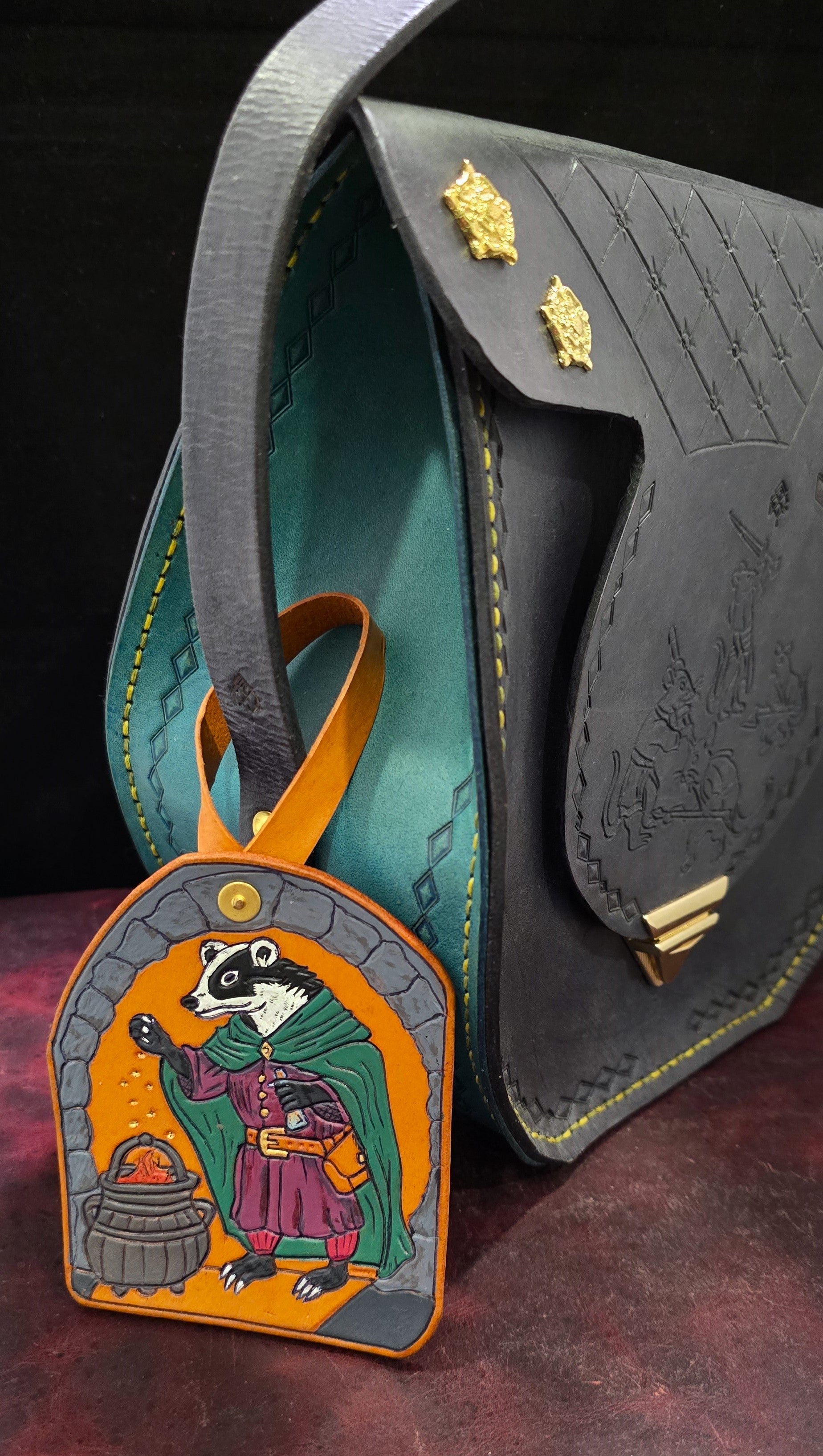 If you want to add a touch of medieval whimsy to your modern purse, look no further! This Leather Purse Tag-Badger alchemist is the perfect way to add flair to any bag with an adjustable strap. Simply slip the tag over the strap and secure it back to your purse. But don't limit yourself to just purses, you can also add it to any accessory, such as your pants belt, to enhance your outfit!