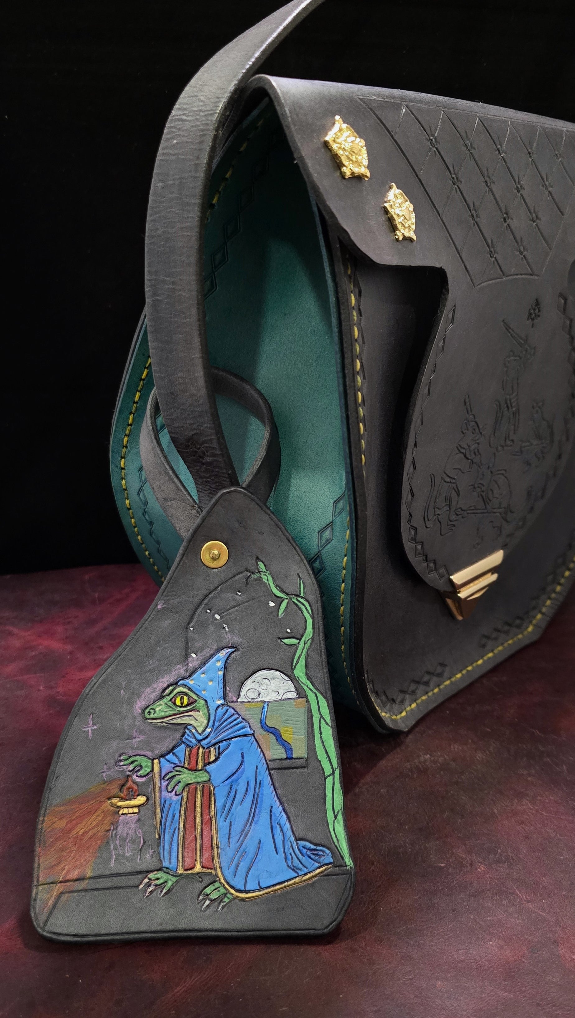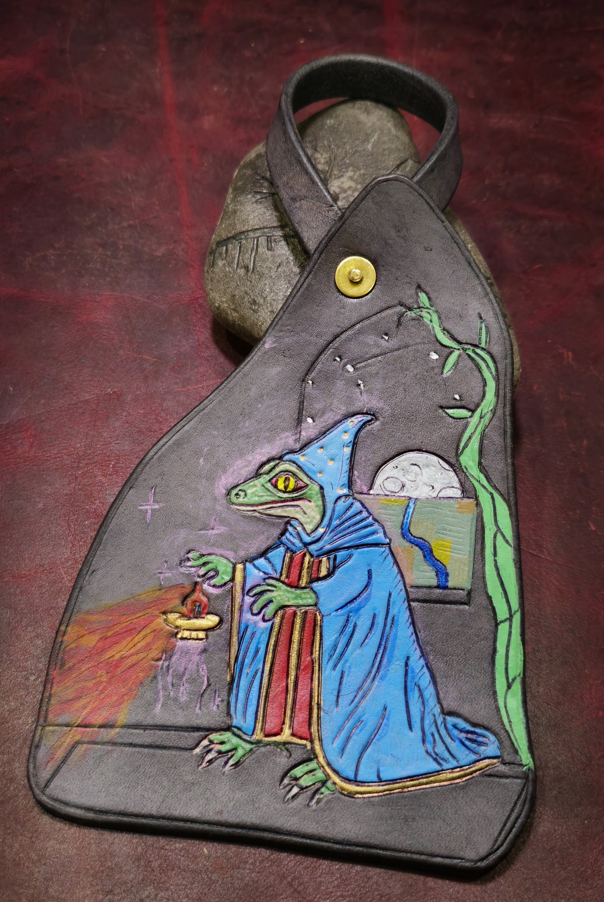 If you want to add a touch of medieval whimsy to your modern purse, look no further! This Leather Purse Tag- Lizard Wizard is the perfect way to add flair to any bag with an adjustable strap. Simply slip the tag over the strap and secure it back to your purse. But don't limit yourself to just purses, you can also add it to any accessory, such as your pants belt, to enhance your outfit!