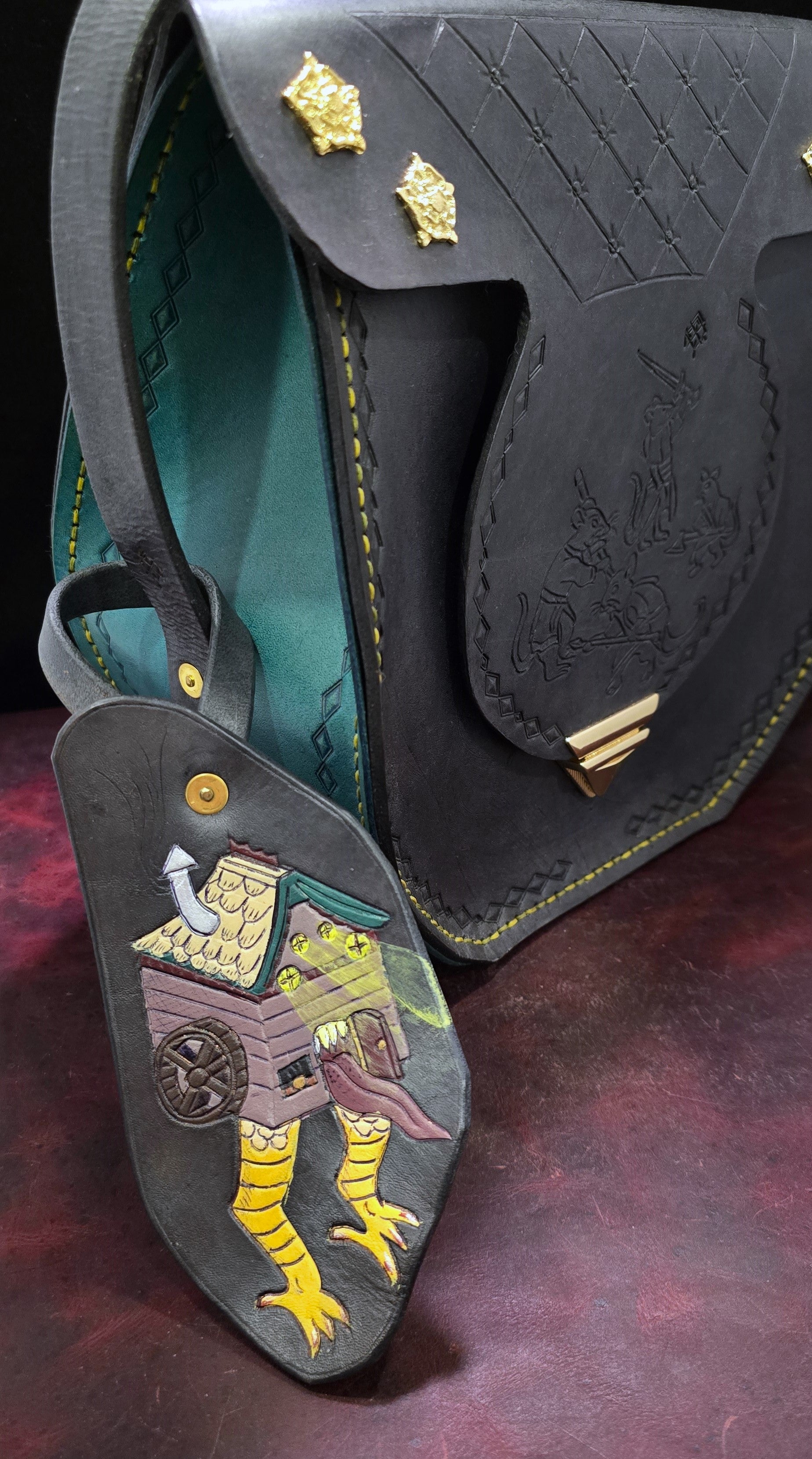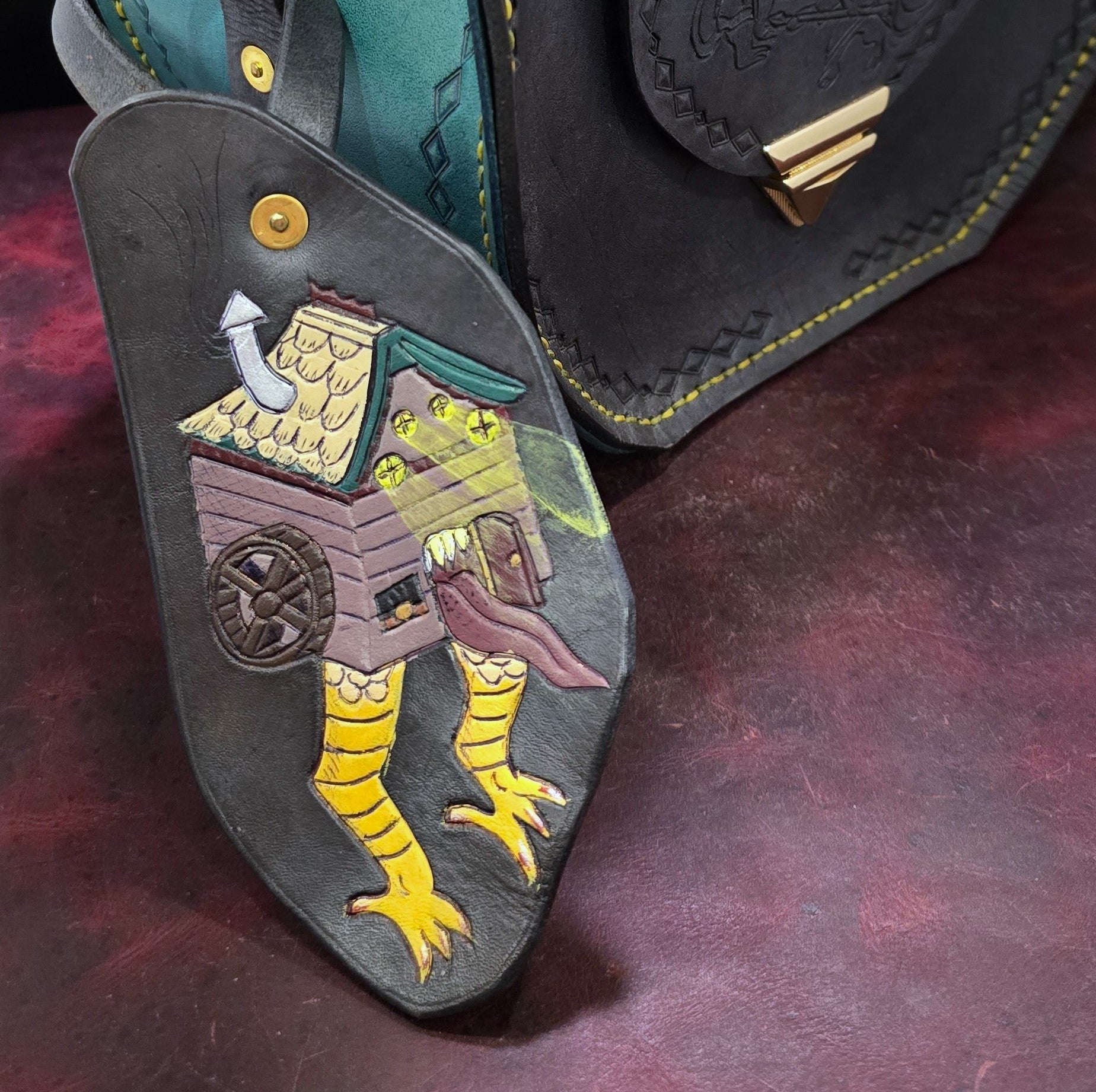 If you want to add a touch of medieval whimsy to your modern purse, look no further! This Leather Purse Tag- Baba Yaga - Chicken House is the perfect way to add flair to any bag with an adjustable strap. Simply slip the tag over the strap and secure it back to your purse. But don't limit yourself to just purses, you can also add it to any accessory, such as your pants belt, to enhance your outfit!