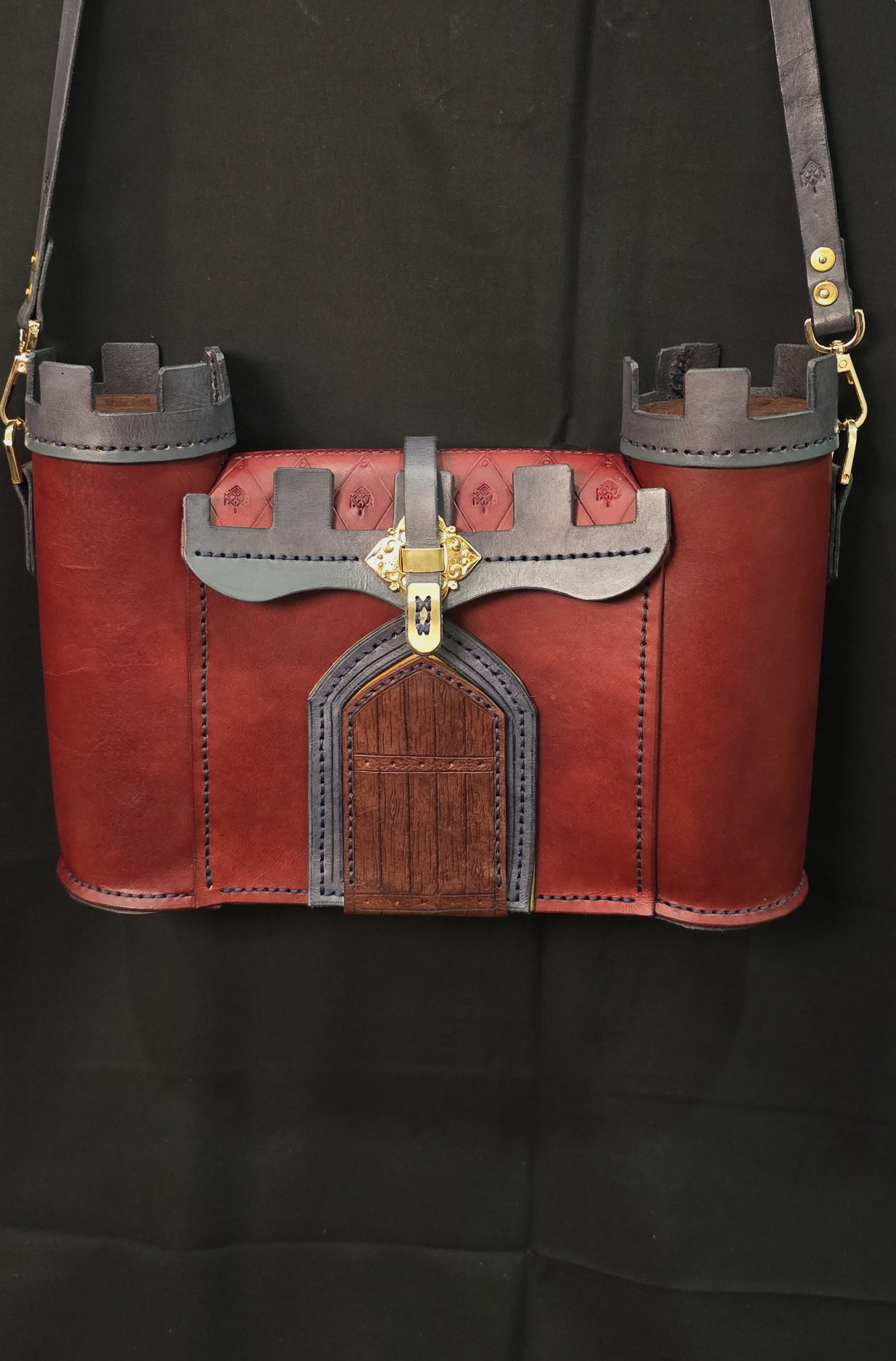 The Red-wall Castle Leather Bag - Burgundy and Grey